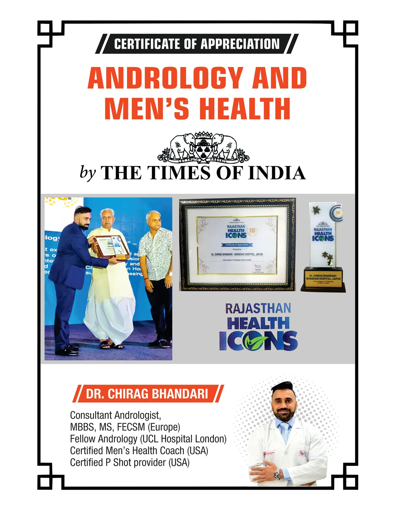 Dr. MK Sharma is certified by renowned institutions in Male Sexual Health.