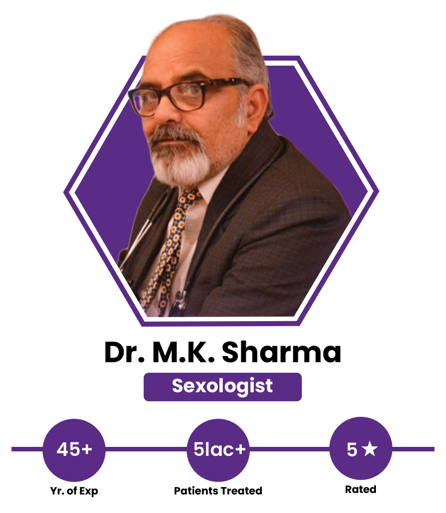 Dr. MK Sharma treats male sexual health issues such as erectile dysfunction, premature ejaculation, low testosterone, penile disorders, and male infertility.